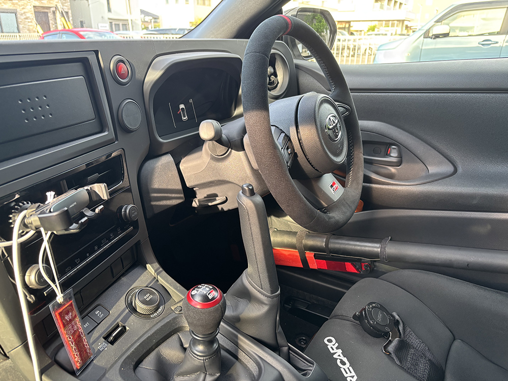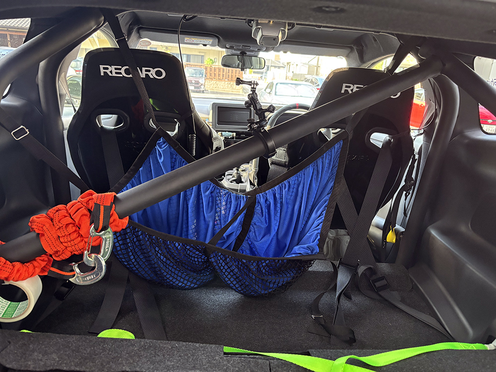 | 主な装着パーツ | 【メーカーオプション】縦引きサイドブレーキ、 エアコン、サブラジ、デフ、インタークラースプレー、セーフティーセンス 【純正オプション】GRロールバー、GRアンダーガード、タンクガード、フロアガード。 GRMNステアリング、シフトノブ、後席をGRMNパーツの内装に変更 【社外品】 レカロバケットシート2脚、クスコ6点式 ハーネス2個、消化器、ラリーコム、クスコ斜交バー、Project μブレーキパッド 【付属品】 POTENZA RE461R Kai TYPE A 5本、POTENZA RE480R 5本、Wedsラリーホイール |